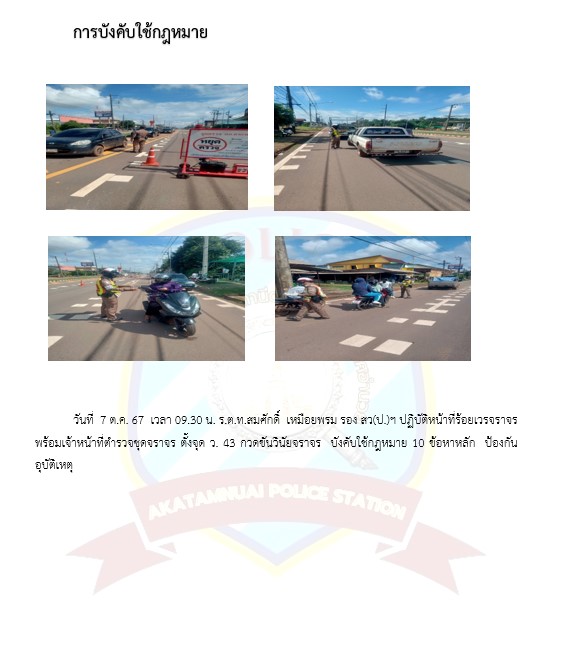 บังคับใช้กฎหมาย 7 ตุลาคม 2567 โดย akatamnuai / ผลการปฏิบัติราชการงาน จราจร สภ.อากาศอำนวย เดือน ตุลาคม 2567