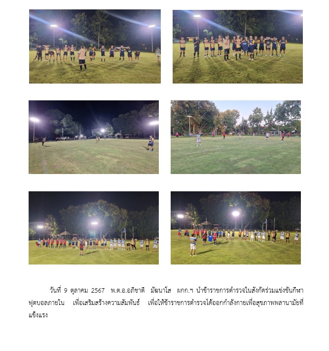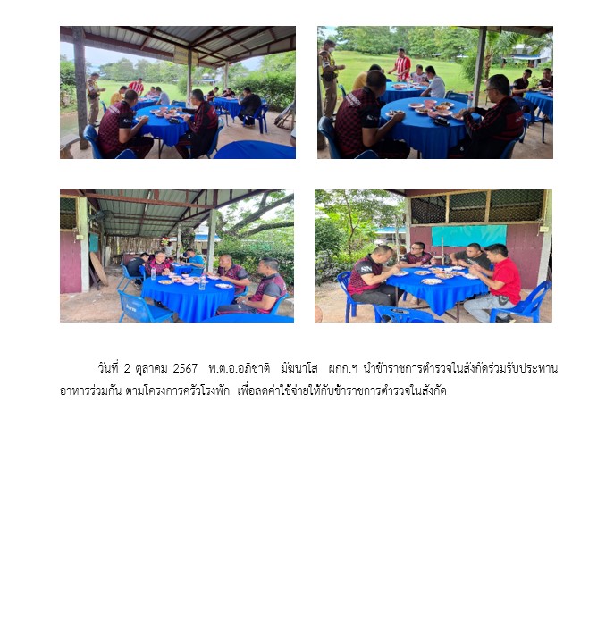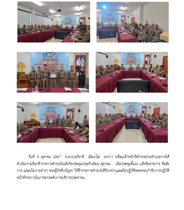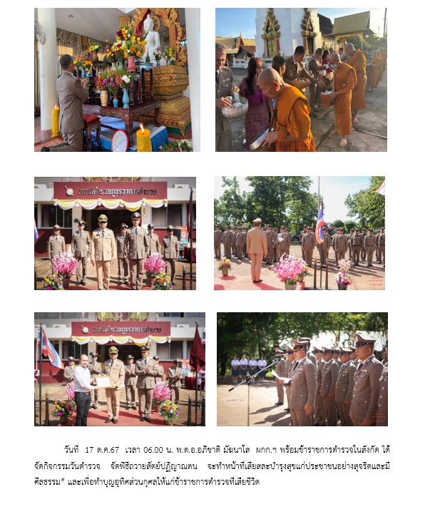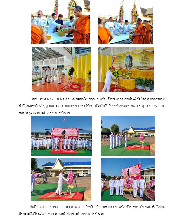 ผลการปฏิบัติราชการเดือนตุลาคม 2567 31 ตุลาคม 2567 โดย akatamnuai / ผลการปฏิบัติราชการงานอำนวยการ สภ.อากาศอำนวย เดือนตุลาคม 2567 ครัวโรงพัก ประชุมประจำเดือน แข่งขันฟุตบอลภายใน จิตอาสา วันที่ 11 ตุลาคม 2567 พ.ต.อ.อภิชาติ มัฆนาโส ผกก.สภ.อากาศอำนวย นำข้าราชการตำรวจฝ่ายอำนวยการจิตอาสา ร่วมกิจกรรมจิตอาสาพัฒนา ทำความสะอาดบริเวณวัดป่าสามัคคีธรรม บ้านคึม ต.โพนแพง อ.อากาศอำนวย จ.สลนคร ร่วมกิจกรรมสำคัญของชาติไทย กิจกรรมวันตำรวจ