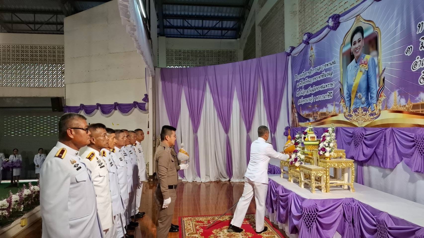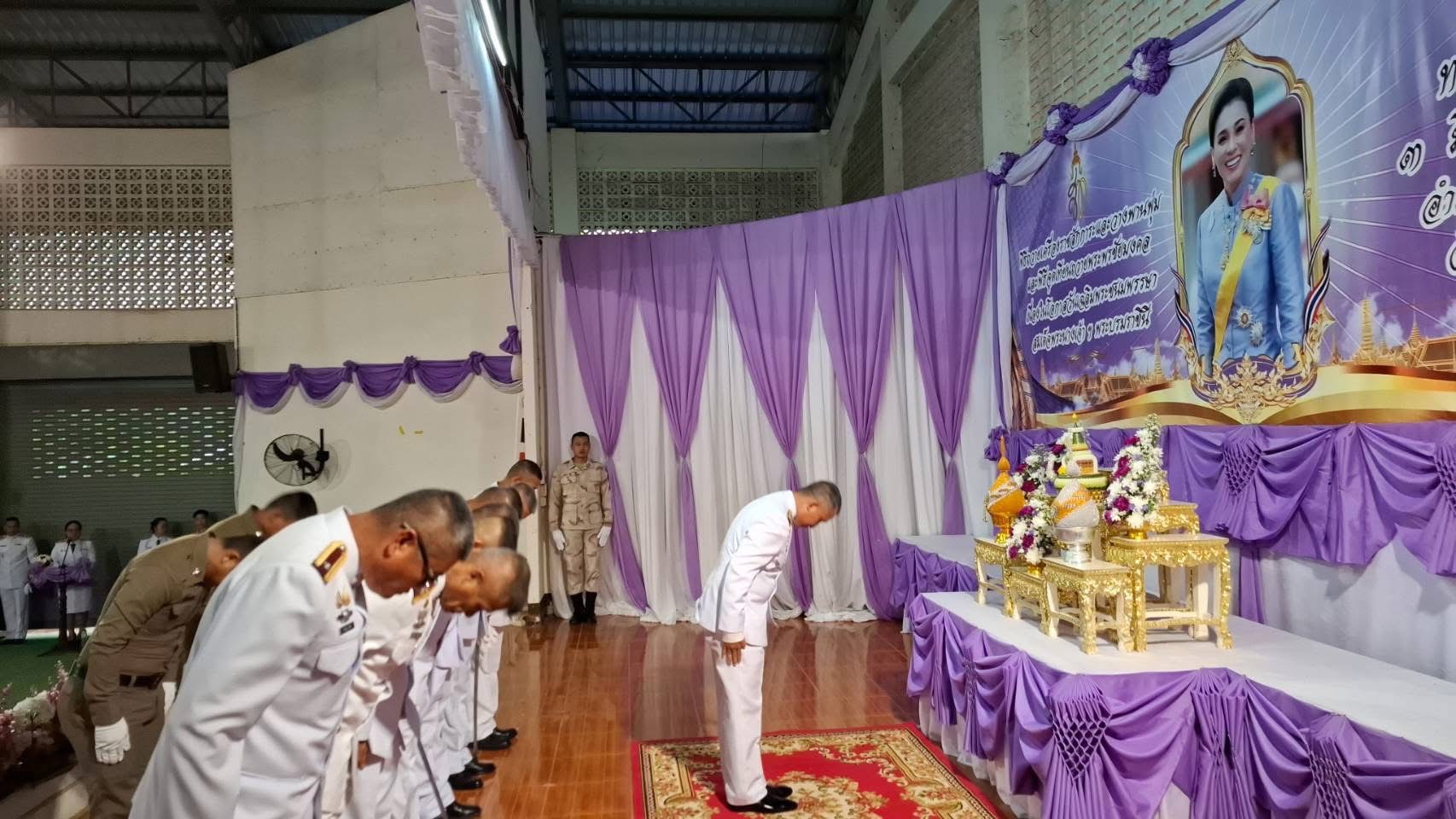 พร้อมข้าราชการตำรวจในสังกัดร่วมพิธีถวายเครื่องราชสักการะ วางพานพุ่มเงิน – พุ่มทอง และพิธีจุดเทียนถวายพระพรชัยมงคล เนื่องในวันเฉลิมพระชนมพรรษาสมเด็จพระนางเจ้าฯ พระบรมราชินี ณ หอประชุมอำเภออากาศอำนวย ต.อากาศ อ.อากาศอำนวย จ.สกลนคร ร่วมกับส่วนราชการและประชาชนในพื้นที่ โดยมีนายอำเภออากาศอำนวยเป็นประธานในพิธี
