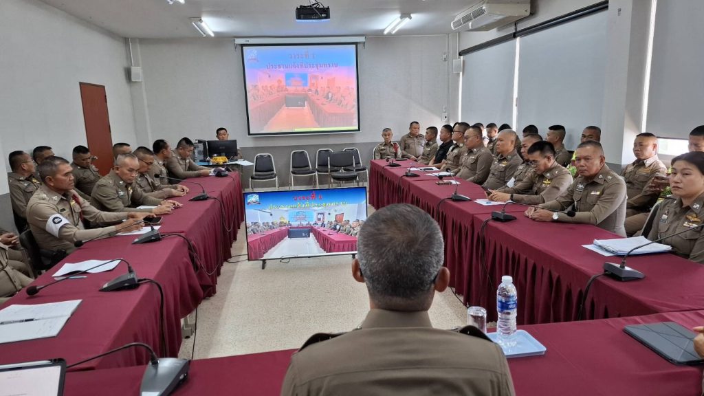 หัวหน้าสถานีตำรวจชี้แจงและให้ข้อมูลเกี่ยวกับการประเมินแก่เจ้าหน้าที่ตำรวจในหน่วยงาน วันที่ 27 ธ.ค. 67