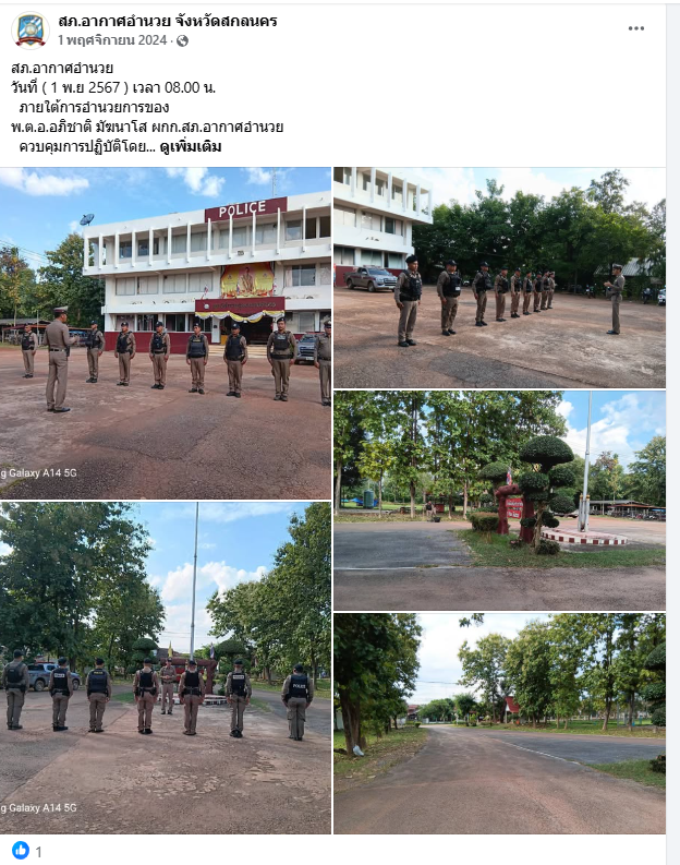 สภ.อากาศอำนวย จว.สกลนคร วันที่ 3 มิ.ย. พ.ศ.2568 เวลา 06.30 น. พ.ต.อ.อภิชาติ มัฆนาโสผกก.สภ.อากาศอำนว