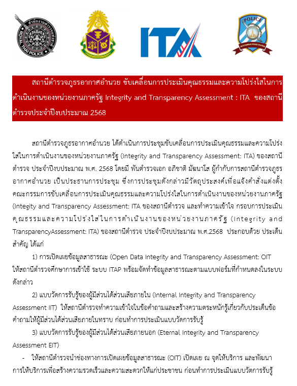 การขับเคลื่อนการประเมิน ITA ปีงบประมาณ 2568